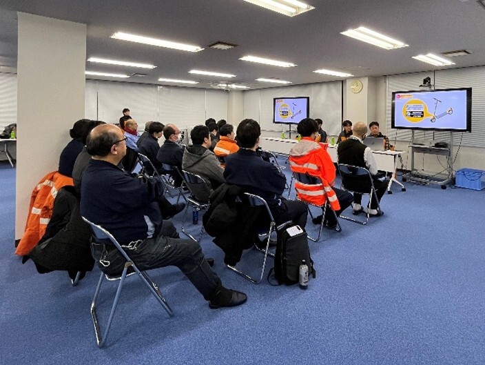 座学で特定小型原動機付自転車の交通ルールや車両特性について学んだ後、