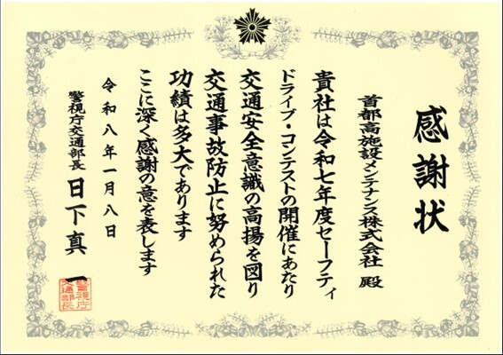 期間中の取り組みが評価され、優秀な成績を収めたとして、この度、当社は感謝状を授与されました。
